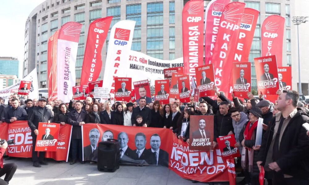 Cumhuriyet Halk Partisi İstanbul İl Başkanı Özgür Çelik, tutuklu bulunan 5 ilçe belediye başkanı için adliye önünde açıklama yaptı. Hasan Akgün, İnan Güney, Hasan Mutlu, Hakan Bahçetepe ve Özgür Kabadayı hakkında aylardır iddianame hazırlanmadığını belirten Çelik, “Biz kendimize güveniyoruz, başkanlarımıza güveniyoruz, arkadaşlarımıza güveniyoruz. Yazılsın iddianameler, başlasın yargılama süreçleri. Yurttaşlarımız da görsün bütün gerçekleri” dedi.