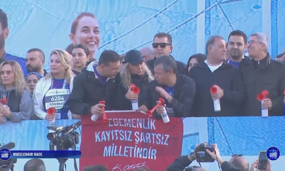 Maraton öncesi konuşan Özgür Özel, “Değerli İstanbullular, hepimizin ayrı meşguliyetleri ayrı tercihleri ayrı mücadeleleri var. Ama bugün hep birlikte bu Pazar gününde, dünyanın en güzel şehrinde spor yapacağız. Tadını çıkarın morallerimizi yüksek tutalım her şey çok güzel olacak” dedi.
