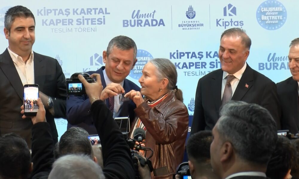 Teslim töreninde konuşan CHP Genel Başkanı Özgür Özel, “Hürriyet Mahallesinin değerli sakinlerini, Kaper Sitesinin uzun süredir evlerine kavuşmayı bekleyen ve bugün bu anlamlı törenle evlerinin teslimatını yapacağımız, anahtarlarını vereceğimiz sakinlerini saygıyla selamlıyorum. Öyle bir günde öyle anlamlı bir yerdeyiz ki gelirken de öyle olacağını biliyordum ama buradaki bazı sohbetler, bazı ifade edilen minnet duyguları tam da uygun bir zamanda uygun bir yere geldiğimizi ve çok doğru bir iş yaptığımızı bir kez daha teyit etti. Bir yanımda Selma Hanım bir yanımda Barış kardeşim oturuyor. Kendileri hak sahibi, bugün evlerine kavuşuyorlar. Barış kardeşim videoları izlerken bana dedi ki Genel Başkanım, Ekrem Başkanın belki İstanbulda en önem verdiği işlerden bir tanesiydi. Sürekli bizleri dinlerdi buranın en iyi şekilde olması için kura çekme töreninde olsun, inşaat evresinde olsun. Buradan hiç elini çekmezdi. Keşke aramızda olsaydı. dedi. Ben Selma Hanıma sordum, Kaper ismi nereden geliyor? diye. 1980 öncesi o zaman konut edinebilmek için kamu personellerinin bir araya gelerek oluşturdukları bir kooperatiften alıyor adını. 1980 öncesi Ecevitin kooperatifçilik modeliyle kentlerde gecekondulaşma değil, sağlıklı yapılaşma önerisiyle bir araya gelmiş Kaper Sitesi – Kamu Personellerinin Kooperatifi, yıllarca burada güzel komşuluklara tanıklık etmiş. Sonra gün gelmiş, 2017 yılında artık riskli yapı ilan edilmiş, depreme dayanıksız olduğu saptanmış. 2019 yılında da bir müteahhitle anlaşılarak yıkılmış. Sonrasında şartlar, bir takım hatalar, eksiklikler, ekonomik sorunlar, bu yıkılan Kaper Sitesinin yerine yenisinin yapılmasına imkan vermemiş. Videoda da söylendiği gibi müteahhit de bırakmak zorunda kalmış. Bir çözümsüzlük ortaya çıkmış” dedi.