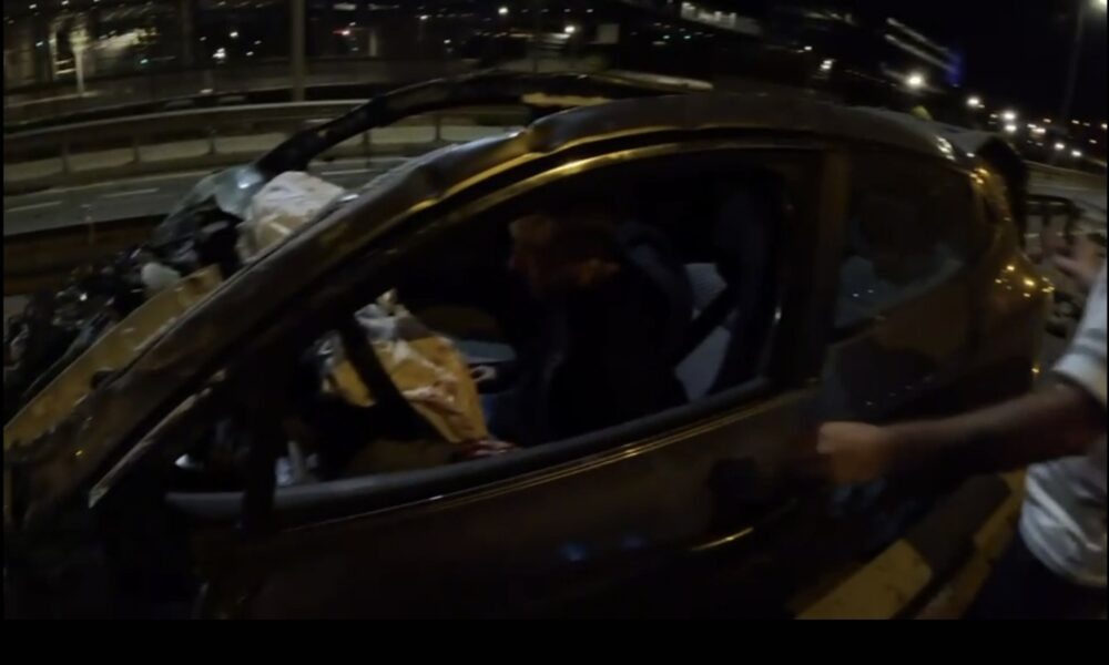 Öte yandan kazanın hemen ardından yaşananlar bir motosiklet sürücüsünün kask kamerasına yansıdı. Görüntülerde, sürücünün otomobilde sıkıştığı anlar yer alırken, çevredekilerin sürücüye yardımcı olmaya çalıştıkları görüldü.