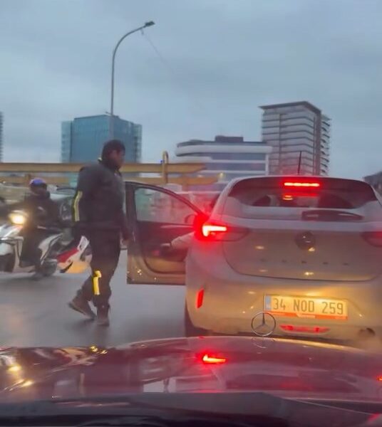 Olay, dün akşam saatlerinde Pendikte meydana geldi. İddiaya göre, seyir halindeki otomobil sürücüsü ile motosiklet sürücüsü arasında yol verme nedeniyle tartışma çıktı. Aracından inen motosiklet sürücüsü, kapısını zorla açtığı otomobilin sürücüsünü kolundan tutarak aşağı indirmeye çalıştı. Motosikletlinin tehdit ve hakaret ettiği tartışma çevredeki sürücülerin araya girmesiyle son bulurken yaşananlar cep telefonu kamerasıyla kaydedildi.