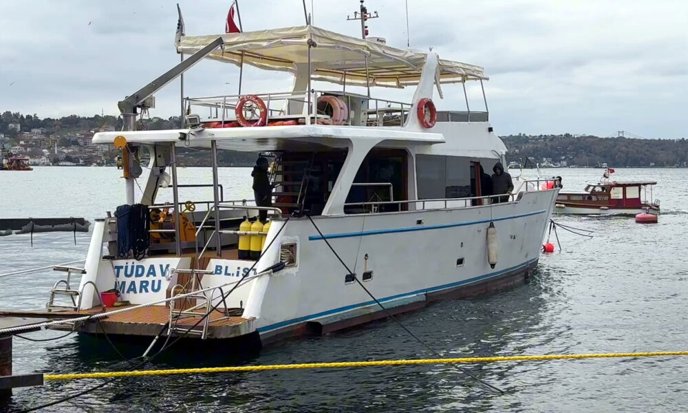 • Prof.Dr. Öztürk ve ekibi, vakfa ait 20 metre uzunlukta ve 5 metre genişlikteki araştırma gemisi 'Maru' ile İstanbul Boğazı'nın değişik kesimlerine su altı dronu kullanarak inceleme yaptı. (FOTOĞRAF: İHSAN DÖRTKARDEŞ / İSTANBUL DHA)