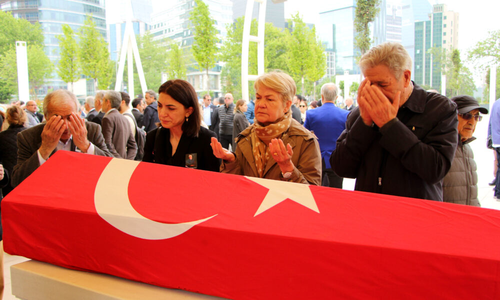 İstanbul'da, kalp yetmezliği nedeniyle hayatını kaybeden Koşuyolu Yüksek İhtisas Eğitim ve Araştırma Hastanesi Kurucu Başhekimi Prof. Dr. Cevat Yakut, Levent Barbaros Hayrettin Paşa Camii’nde kılınan cenaze namazı sonrası son yolculuğuna uğurlandı. Mehmet Ağar Cevat Yakut'un eşi Çiğdem Yakut'a taziyelerini sundu. Foto: Hasan Yıldırım/İstanbul,(dha)