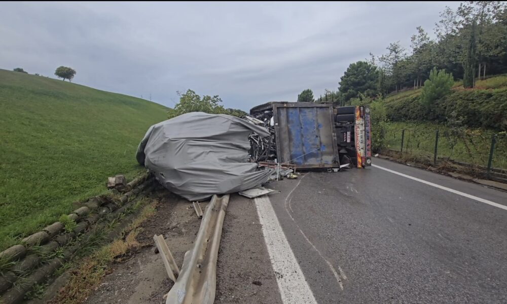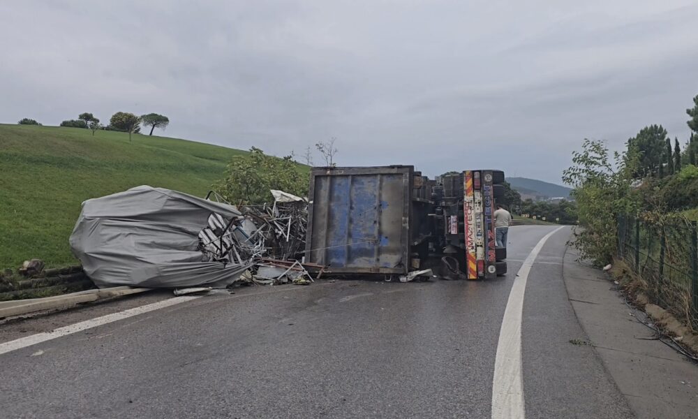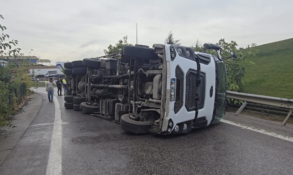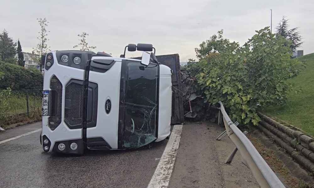İstanbul – Sancaktepe TEM bağlantı yolunda kontrolden çıkan kamyon devrildi