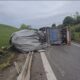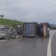 • Sancaktepe TEM bağlantı yolunda kontrolden çıkan kamyon devrildi. Fotoğraf: İstanbul,(DHA)