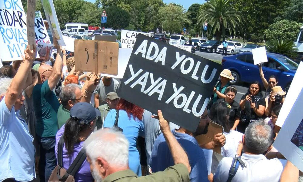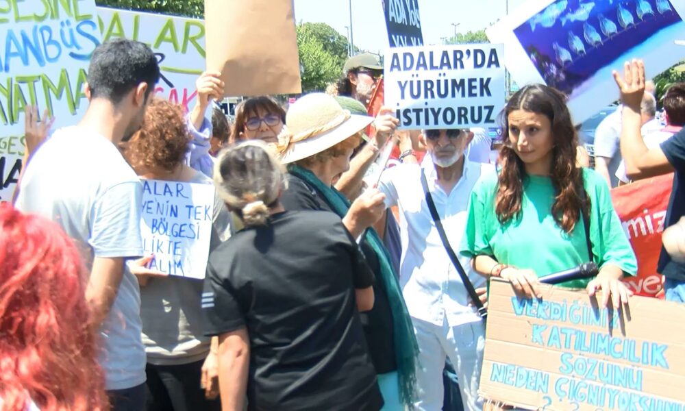 İstanbul – Saraçhane’de Adalar sakinlerinden elektrikli minibüs protestosu