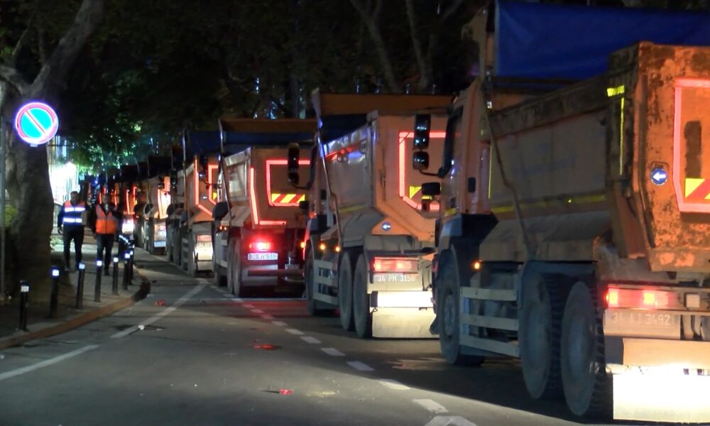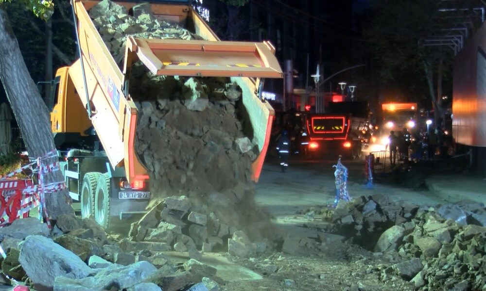 İstanbul – Sarıyer’de çöken yolun dolgu ve onarım çalışmaları gece boyunca sürdü