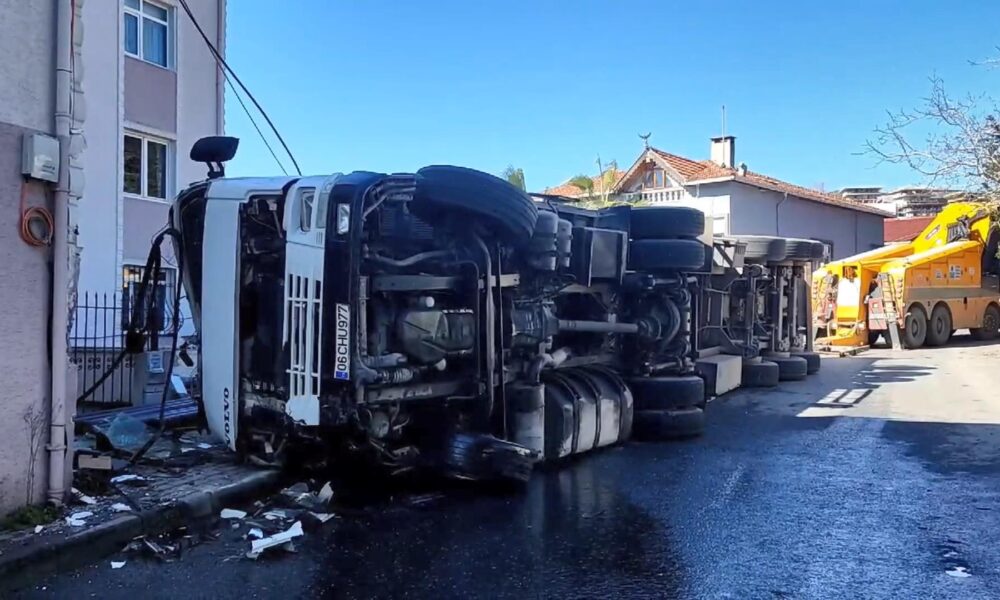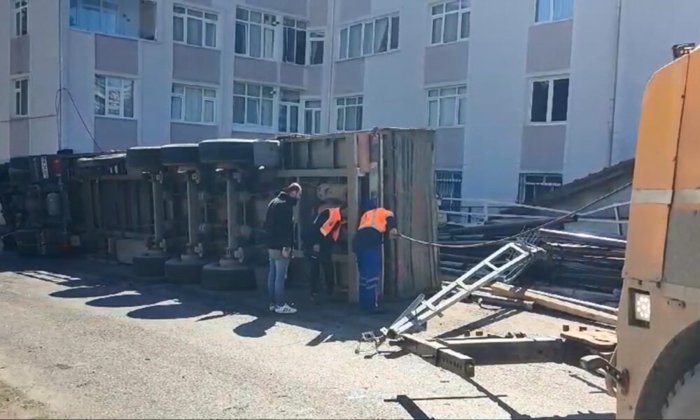 İstanbul – Sarıyer’de freni arızalanan TIR yan yattı; şoför yaralandı