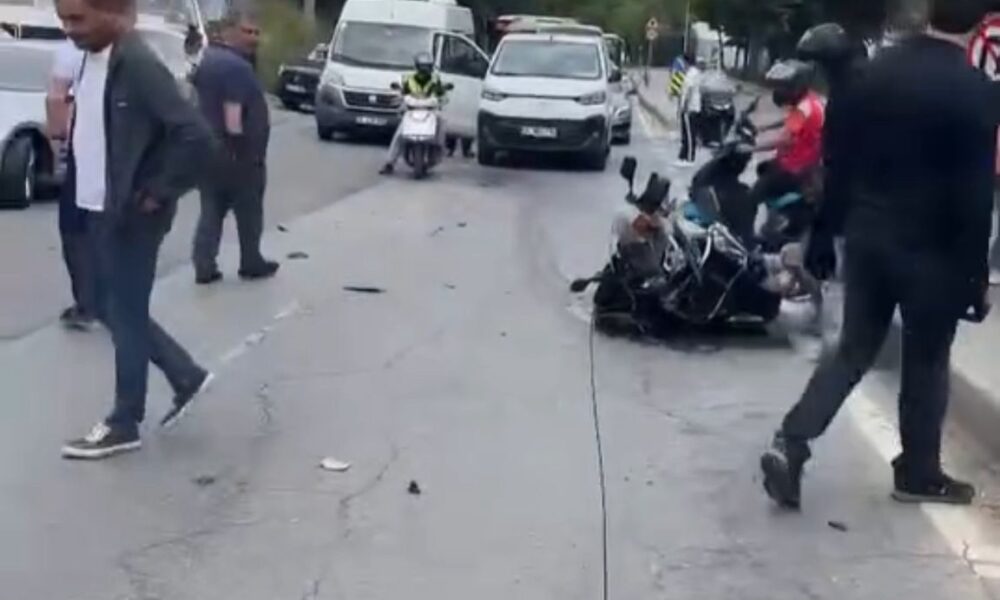 İstanbul – Sarıyer’de hafif ticari araçla motosikletin çarpıştığı anlar kamerada: 2 zabıta yaralandı