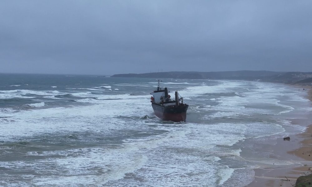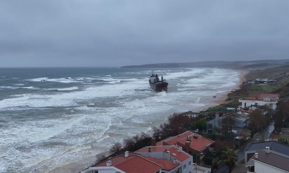 İstanbul- Sarıyer’de karaya oturan gemi havadan görüntülendi