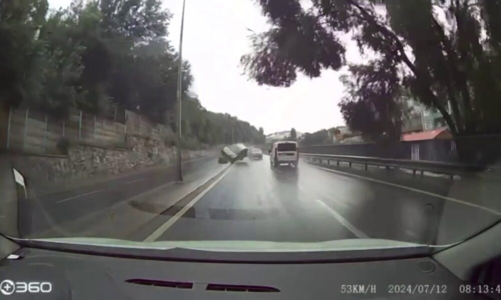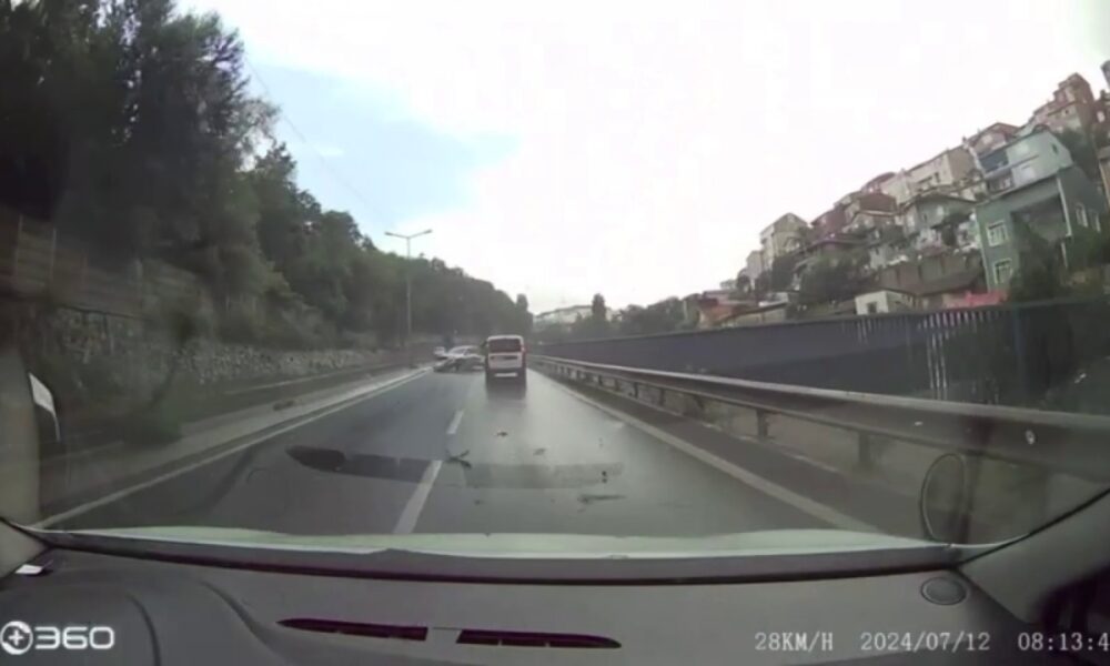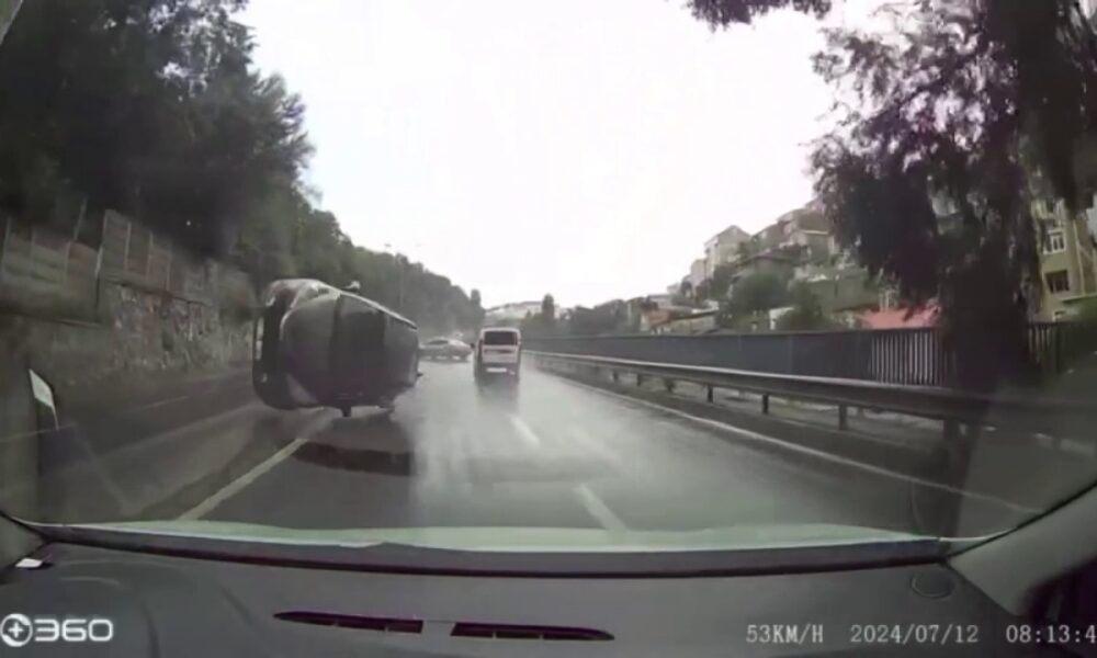 İstanbul – Sarıyer’de karşı şeride geçen otomobil takla attı; kaza anı kamerada