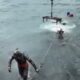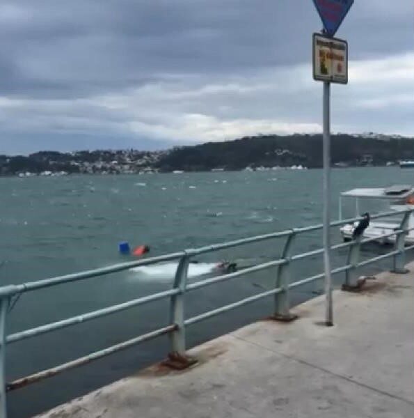 İstanbulda kent genelinde etkili olan şiddetli lodos hava ve deniz ulaşımını olumsuz etkilemeye devam ediyor. Sarıyer Büyükdere sahilinde bir balıkçı teknesi lodos nedeniyle battı. Tekne vinç yardımıyla denizden çıkarıldı. Tekneyi kurtarma çalışmaları cep telefonu kamerasına yansıdı.
