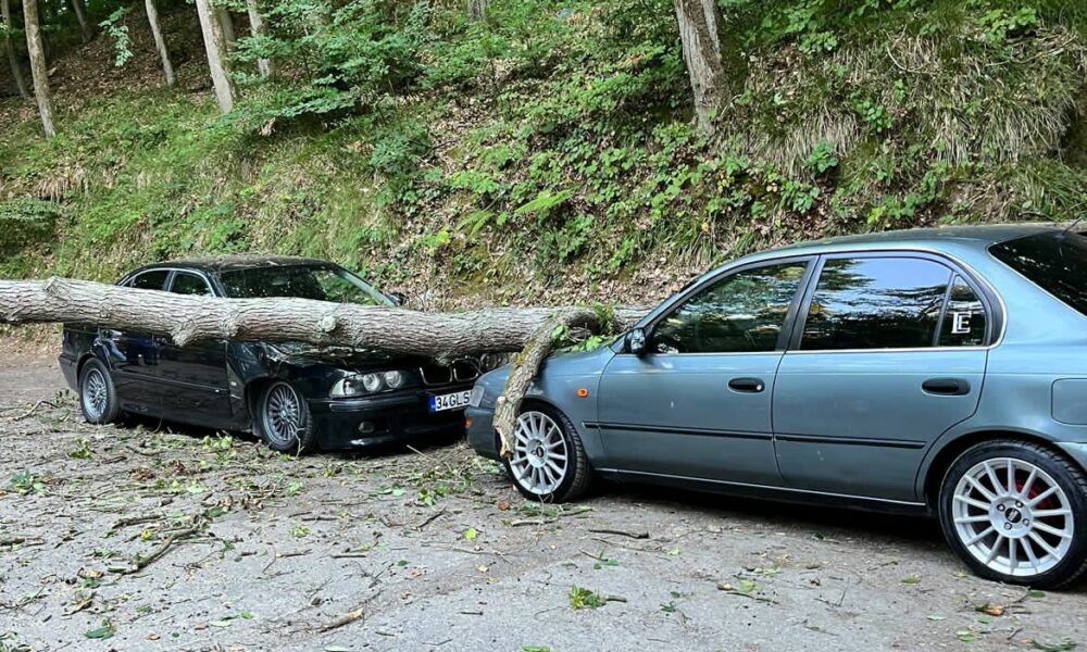 Sarıyer’de park halindeki 2 otomobilin üzerine ağaç devrildi