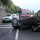 • SARIYER’DE yağış nedeniyle kayganlaşan yolda sürücüsünün direksiyon hakimiyetini kaybettiği otomobil orta refüje vurduktan sonra takla atarak ters döndü. Fotoğraf: Yılmaz OKUR / İstanbul DHA