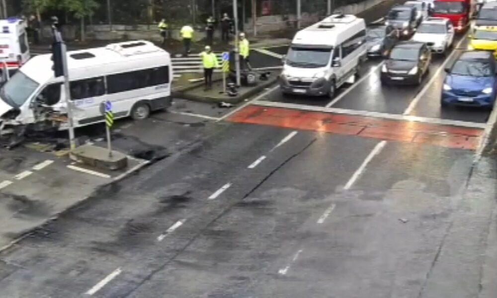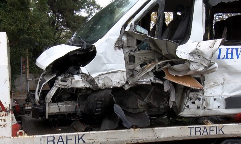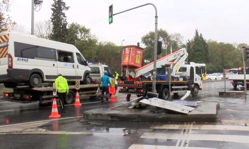 İstanbul- Sarıyer’de servis minibüsü refüjdeki trafik levhasına çarptı: 2 yaralı