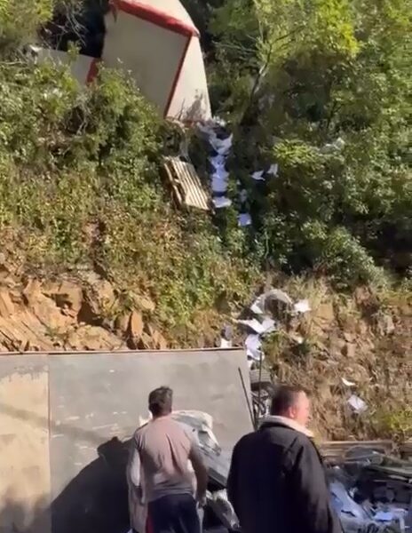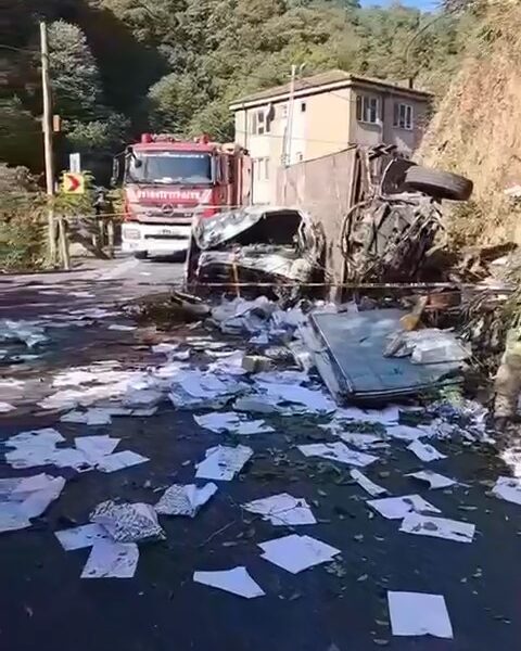 Kaza, Maden Mahallesi Özdereiçi Sokakta saat 10.00 sıralarında meydana geldi. Edinilen bilgiye göre, 34 YIM 69 plakalı kamyonla ilerleyen şoför direksiyon hakimiyetini kaybetti. Kamyon yoldan çıkıp konteynere çarptı. Ardından da savrularak alt yola düştü. Kazada kamyon şoförü ve yanındaki kişi yaralandı. İhbar edilmesi üzerine olay yerine itfaiye, sağlık ve polis ekibi sevk edildi. Yaralı şoför ve yanındaki kişi ambulansla hastaneye kaldırıldı.