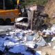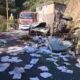 Kaza yapan kamyonun kaldırılması için olay yerine vinç çağrıldı. Kamyonun kaldırılması için çalışmalar sürüyor.