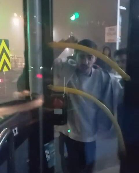 Olay, dün akşam saatlerinde Sarıyer’de bulunan Borsa İstanbul Durağı yakınlarında meydana geldi. Duraktaki yolcuları alan İETT otobüsü şoförü, ilerlediği sırada bir grup genç, otobüsü durdurup, durak dışı binmek istedi. Ancak otobüs şoförünün kurallar gereği durmaması üzerine gençler, otobüsün camlarını yumrukladı, şoföre küfür ve hakaret etti. O anlar ise cep telefonu kamerasıyla kaydedildi. Görüntülerde gençlerin otobüsün camlarına vurduğu ve küfürler ettiği görülüyor.
