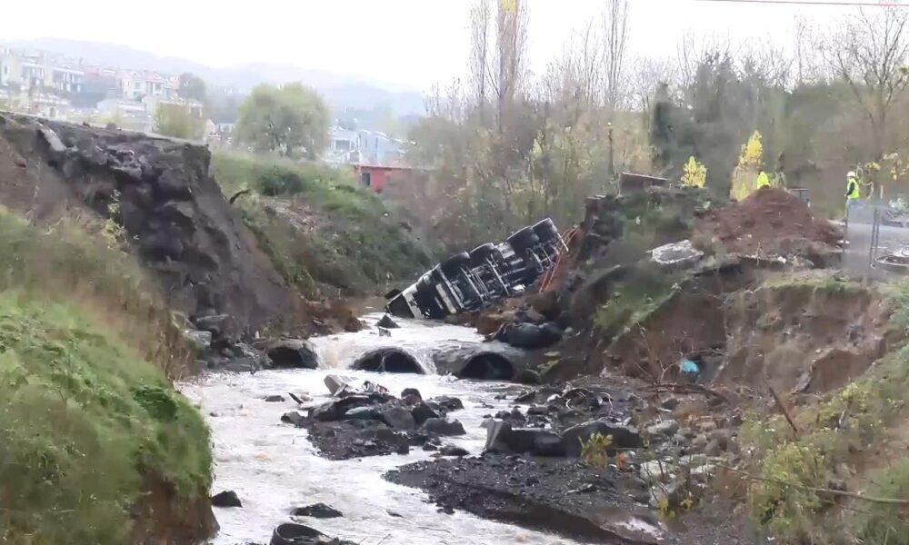 İstanbul – Sarıyer’de yol çöktü; araçlar dereye düştü – 1