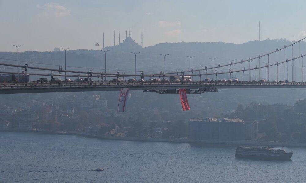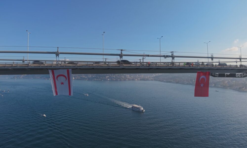 İstanbul – Şehitler Köprüsü’ne, kuruluşunun 42’nci yılını kutlayan KKTC bayrağı asıldı