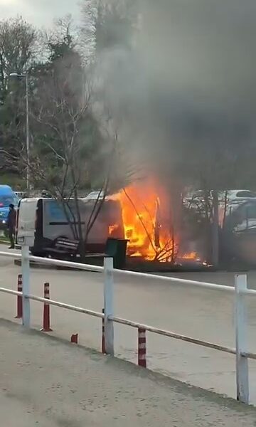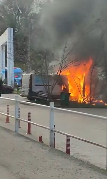 İstanbul – Şile’de hafif ticari araç alev alev yandı