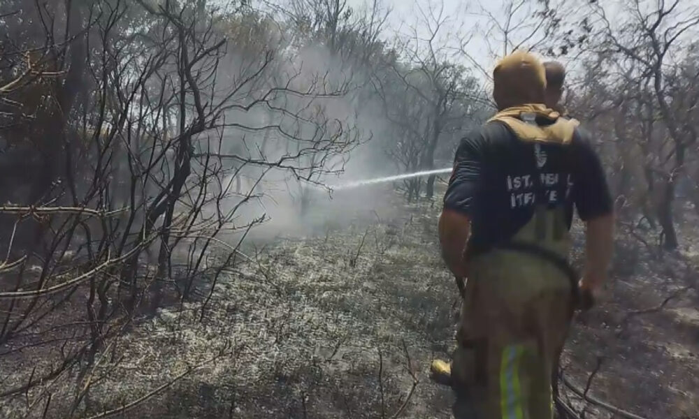 Silivri Çeltik Mahallesi'nde ormanlık alanda yangın çıktı. Alevlere kısa sürede müdahale eden ekipler, yangını büyümeden söndürdü. Foto: Uğur Samet AVCI-İSTANBUL-DHA