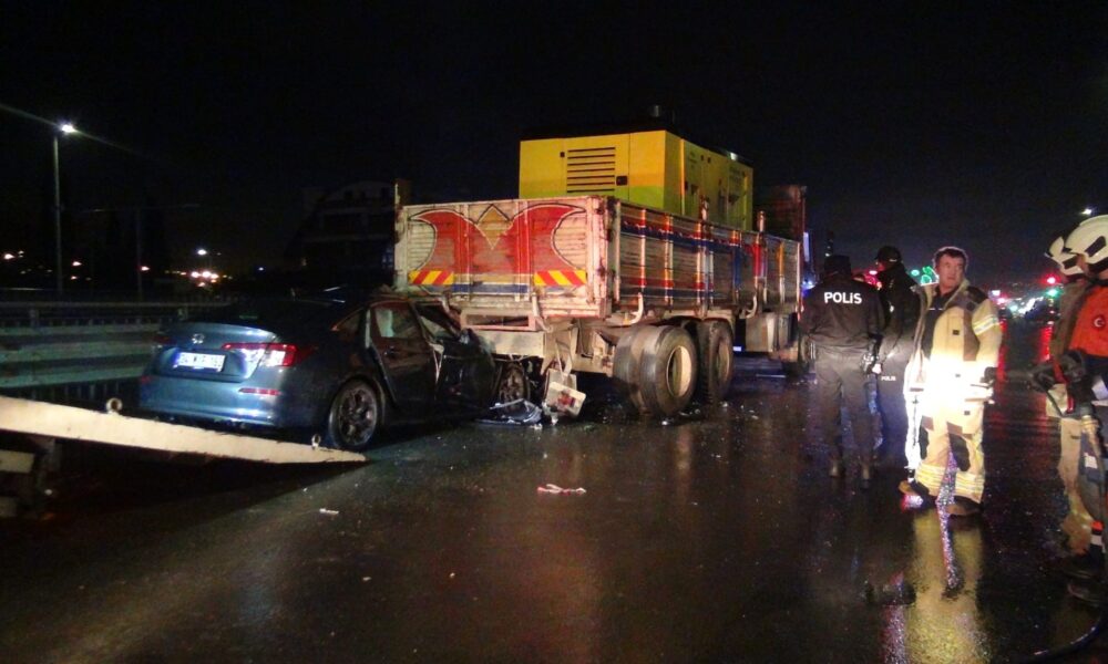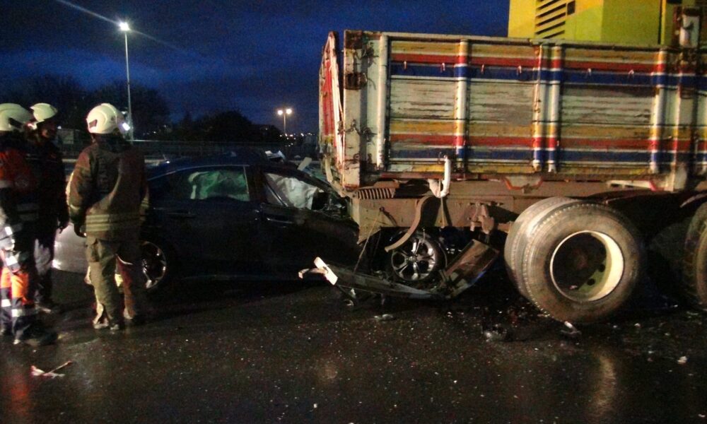 İstanbul – Silivri’de seyir halindeyken tekeri kopan otomobil kamyona çarptı; sürücü yaralandı