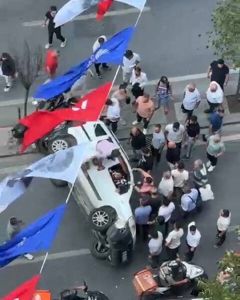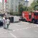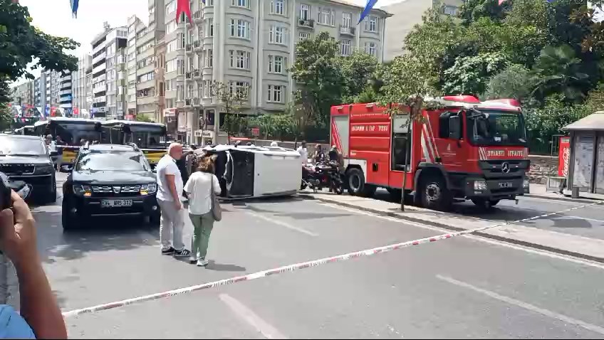ŞİŞLİ’de aracının direksiyon hakimiyetini kaybeden alkollü sürücü park halindeki otomobile ve motosiklete çarparak yan yattı. Alkollü sürücü, aracından çıkarılarak tedbir amaçlı hastaneye kaldırıldı. Kaza nedeniyle trafikte yoğunluk oluştu. Foto: Hasan YI