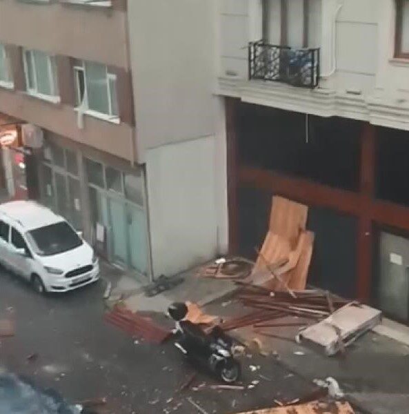 İstanbul – Şişli’de fırtınada çatının uçtuğu anlar kamerada; ölümden son anda kurtuldu