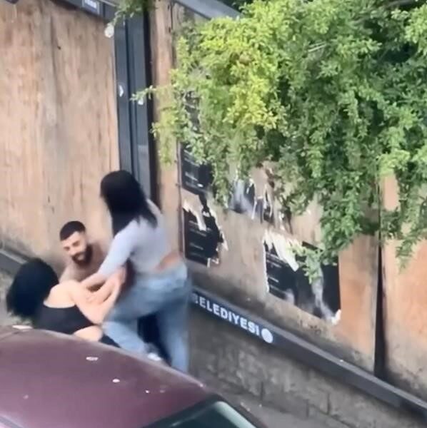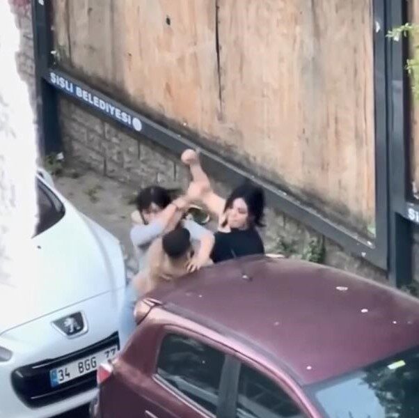ŞİŞLİ’de gece kulübünde eğlenen ve alkollü oldukları iddia edilen yabancı uyruklu 2 kadın ve bir erkek sokakta kavga etti. Kadınlardan birine saldıran adamı, diğer kadın ayırmaya yatıştırmaya çalıştı. Kavga anları cep telefonu kamerasına yansıdı.( FOTOĞR