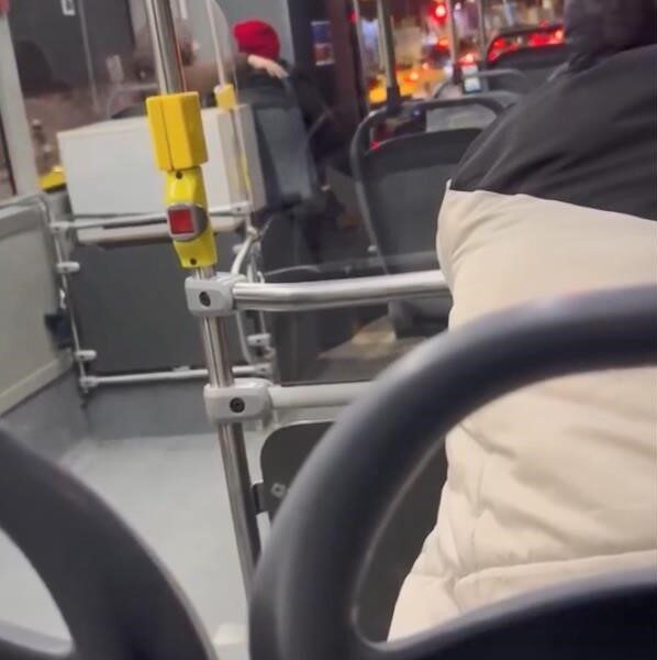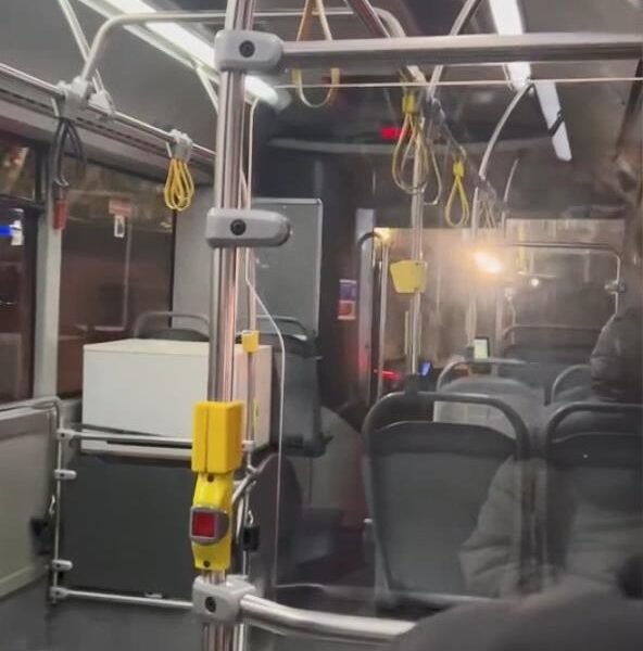 Yolcuların “Bağıramazsın” demesi üzerine şoför “Ben bağırmıyorum benim konuşmam böyle” dedi. Şoför yolculardan birinin “Terbiyesizlik yapma” sözleri üzerine bir ara otobüsteki yolculara dönerek “Benim yaptığım terbiyesizlik mi” diye sordu. Bunun üzerine yolculardan biri, “Oturduğun yerden bir düğmeye basacaksın” dedi. Şoför de, “Sizi anlamıyorum arkadaşlar size boş araba getiriyorum, sıcak araba getiriyorum” ifadelerini kullandı. Kadın yolcu, “On tane otobüs var hepsi kapıyı açtı bir sen açmıyorsun” diye çıkıştı. Tartıştığı yolcu “Tamam abi akşam akşam belanı bulma” derken şoför ise, “Kapıyı orada açtığım zaman amir niye orada açıyorsun diyor ve ceza yazıyorlar” dedi. Kadın ise, “Çok takıyorsun abi bir düğmeye basacaksın” sözleriyle karşılık verdi.