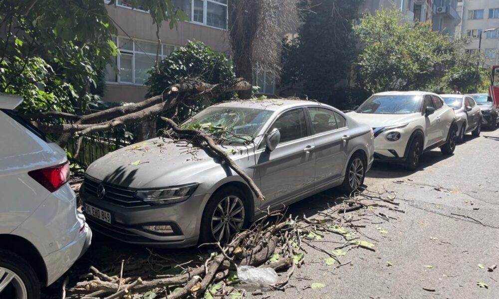 İstanbul – Şişli’de kurumuş ağaç dalı aracın üzerine düştü; bir kişi son anda kurtuldu