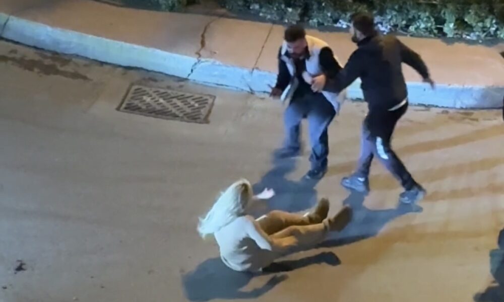 İstanbul – Şişli’de sokaktaki tartışma sonrası kendini yerden yere atan kadın direği yumrukladı