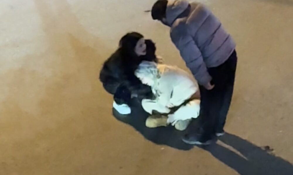 Tartışma devam ederken, kadını arkadaşı yolun ortasından kaldırmak için kollarından tutarak sürüklemeye çalıştı.