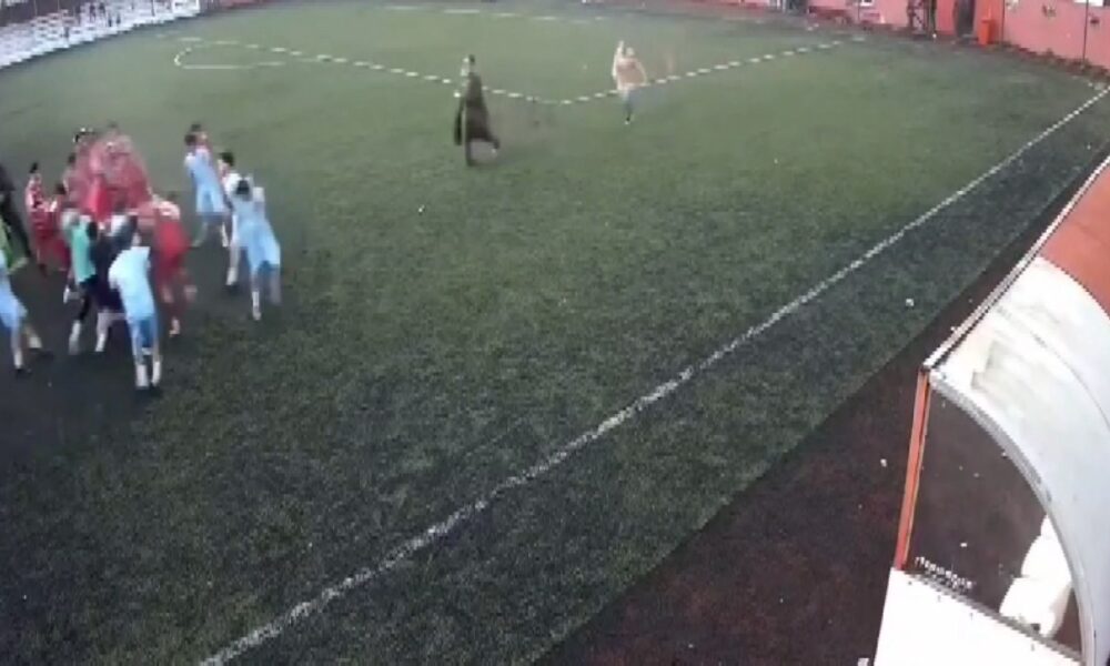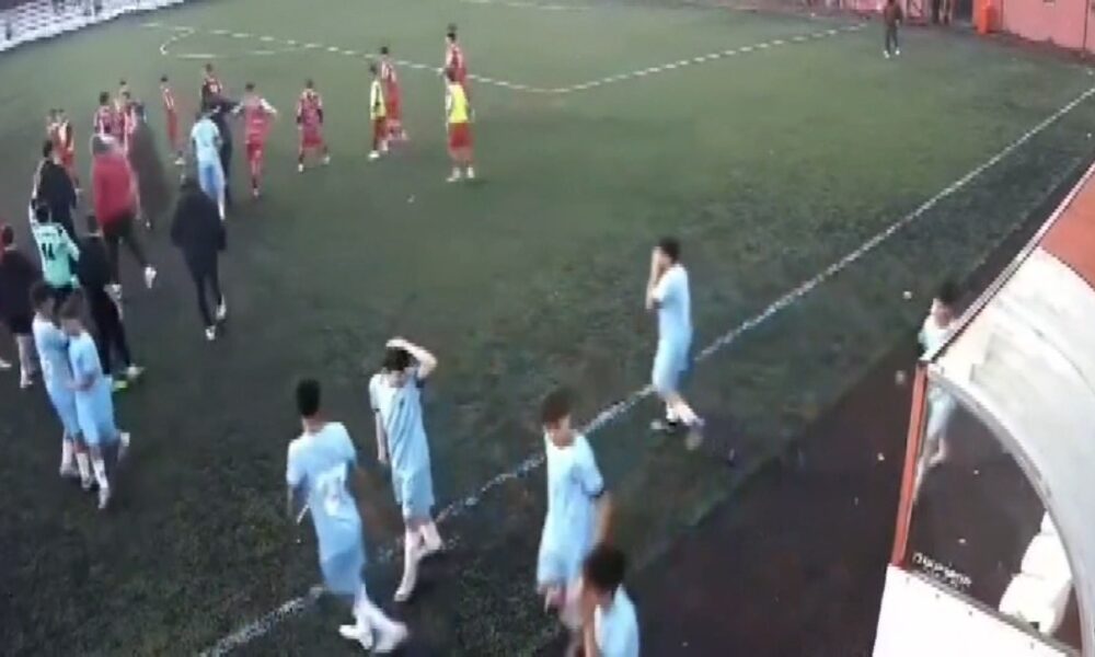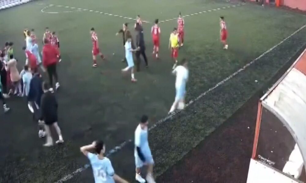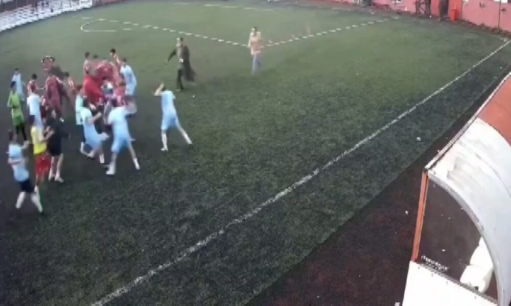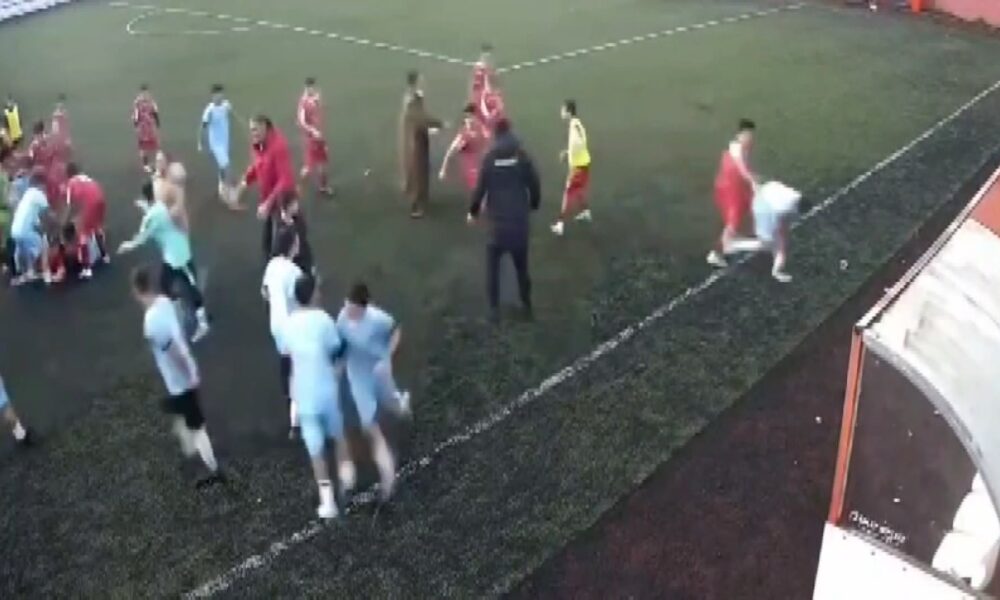 2 futbolcunun yaralandığı kavga görüntüleri stadın güvenlik kamerasına yansıdı. İSTANBUL, (DHA)