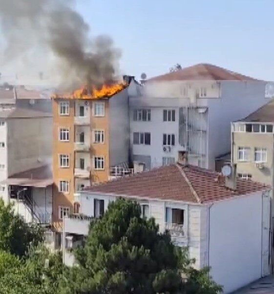 İstanbul- Sultanbeyli’de 5 katlı binanın çatısı alev alev yandı
