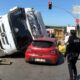 Kaza, saat 14.30 sıralarında Akşemsettin Mahallesi, Tavukçuyolu Caddesinde meydana geldi. İddiaya göre; Atatürk Caddesi’nden Tavukçuyolu Caddesi’ne dönen R.Y.’nin kullandığı 34 EH3469 plakalı moloz yüklü hafriyat kamyonu virajı alamayarak trafik ışıklarında bekleyen R.K. yönetimindeki 35 ASK 580 plakalı otomobilin üzerine devrildi. İhbar üzerine olay yerine polis, sağlık ve itfaiye ekipleri sevk edildi. Olay yerine gelen polis ekipleri çevrede güvenlik önlemi aldı. Kazaya karışan ve sürücü kursu aracı olduğu öğrenilen otomobilde bulunanlar çevredekilerin yardımı ve kendi imkanlarıyla araçtan çıktı. Kazada şans eseri ölen ya da yaralanan olmadı. Hafriyat kamyonundaki molozlar yola dökülürken yolun temizlenmesi için belediye temizlik ekibi olay yerine çağırıldı. Molozların temizlenmesinin ardından kazaya karışan araçlar vinçle yoldan kaldırıldı. Kazaya karışan araçlarda hasar meydana gelirken, kaza anı çevredeki bir iş yerinin güvenlik kamerasına saniye saniye yansıdı.Görgü tanığı Şafak Aytaç, “Hafriyat kamyonu virajı aldığı sırada manevrasını kaybederek yıkıldı. Otomobilin üzerine yıkıldı. Yaralı yok. Polis, itfaiye geldi. Çekiciler şimdi kaldırıyorlar. Yol kapandı. Kazayı gördük ve sese geldik aynı zamanda ” diye konuştu.