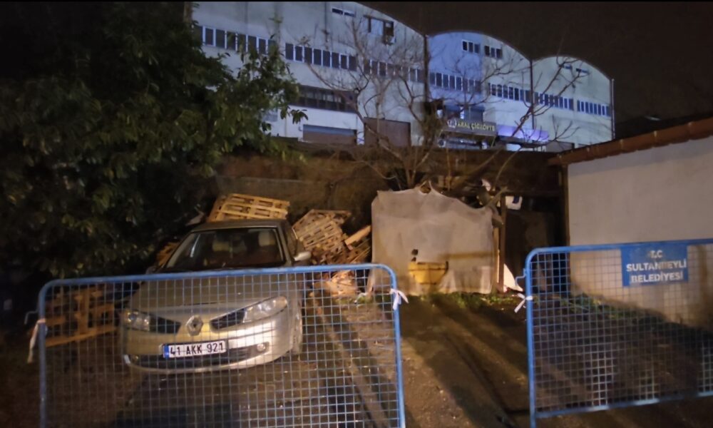 İstanbul – Sultanbeyli’de istinat duvarı ikinci kez çöktü; park halindeki otomobilde hasar oluştu