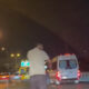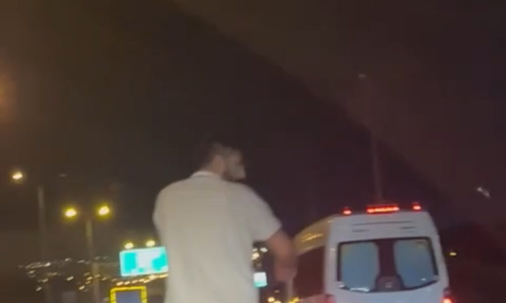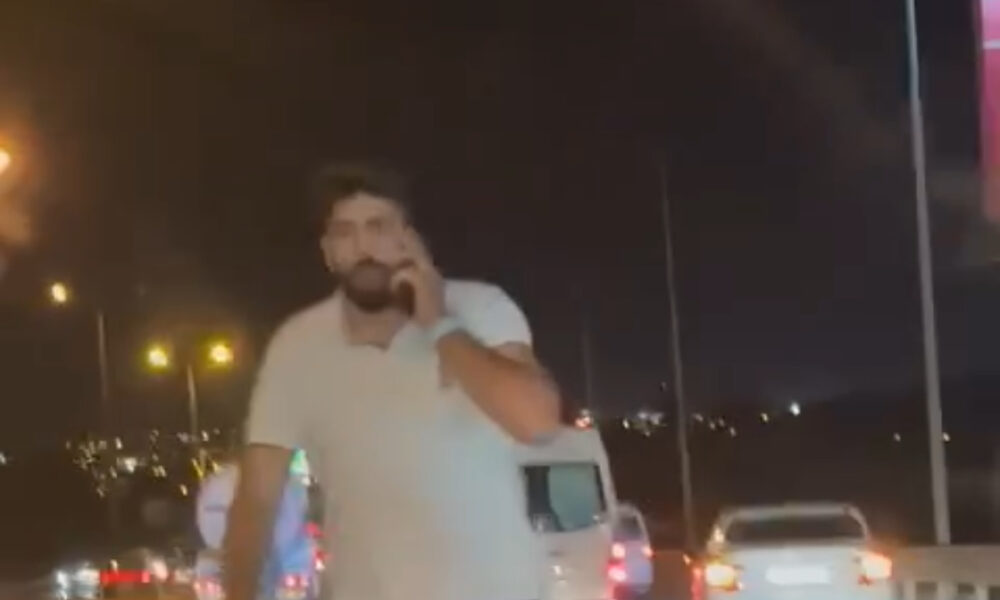Cep telefonuna yansıyan görüntülerde, minibüs şöförünün aşağıya indiği, otomobilin üzerine yürüdüğü, kaputun üzerine yatıp gitmesini engellediği görülüyor. Bu sırada otomobildeki kadının sürücüye inmemesini söylediği duyuluyor.