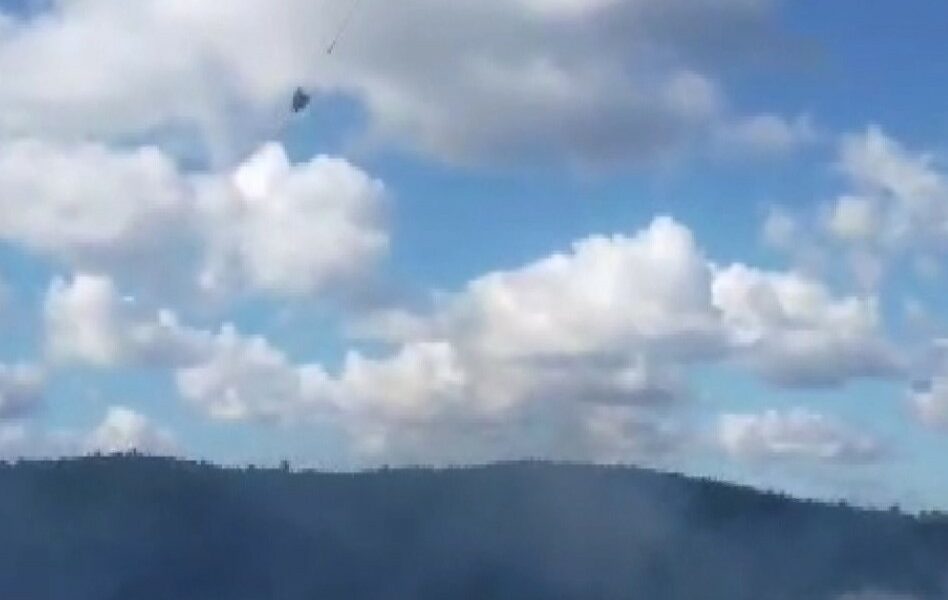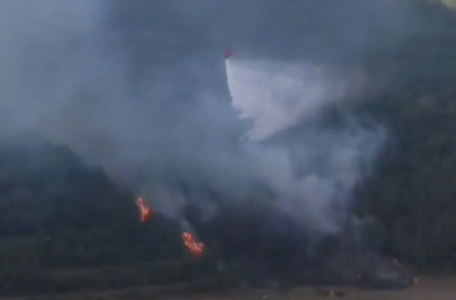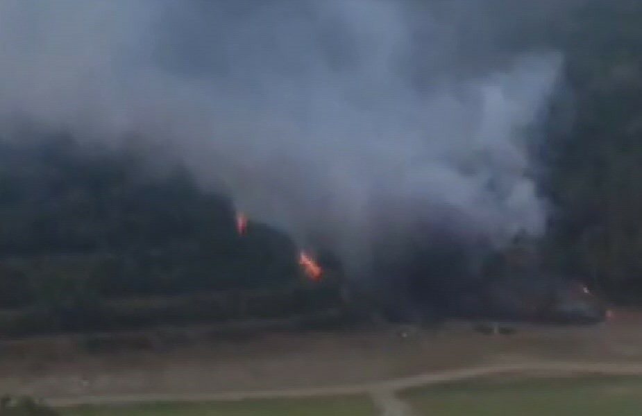 Sultangazi Hacı Bektaş-i Veli Kent Ormanı’nda yangın çıktı. Alevlere helikopterle havadan müdahalerle kısa sürede söndürüldü. - Fotoğraf İstanbul DHA