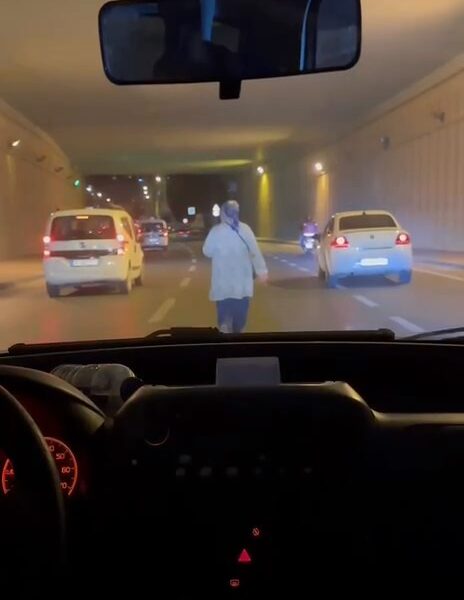 İkinci olay ise, Sultangazi TEM Otoyolu Ankara istikametinde meydana geldi. Kadın, akan trafiğe aldırış etmeden TEMde uzun süre yürüdü. Hem kendi hayatını hem de sürücüleri tehlikeye atan kadın araçların korna çalmasına da aldırış etmedi. Kadının otoyol kenarında yürüdüğü ve araç sürücülerinin korna çaldığı anlar cep telefonu kamerasına yansıdı.