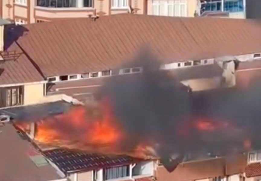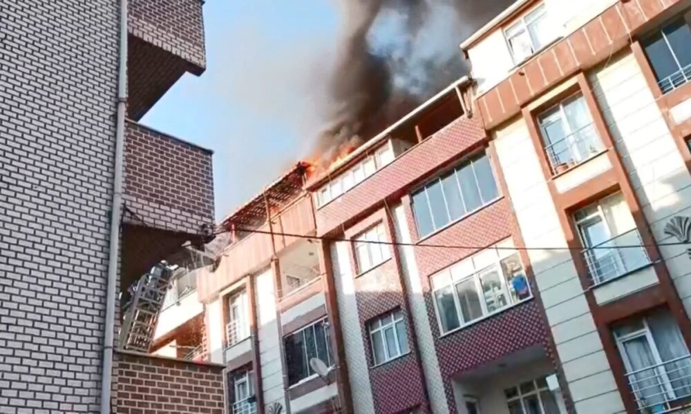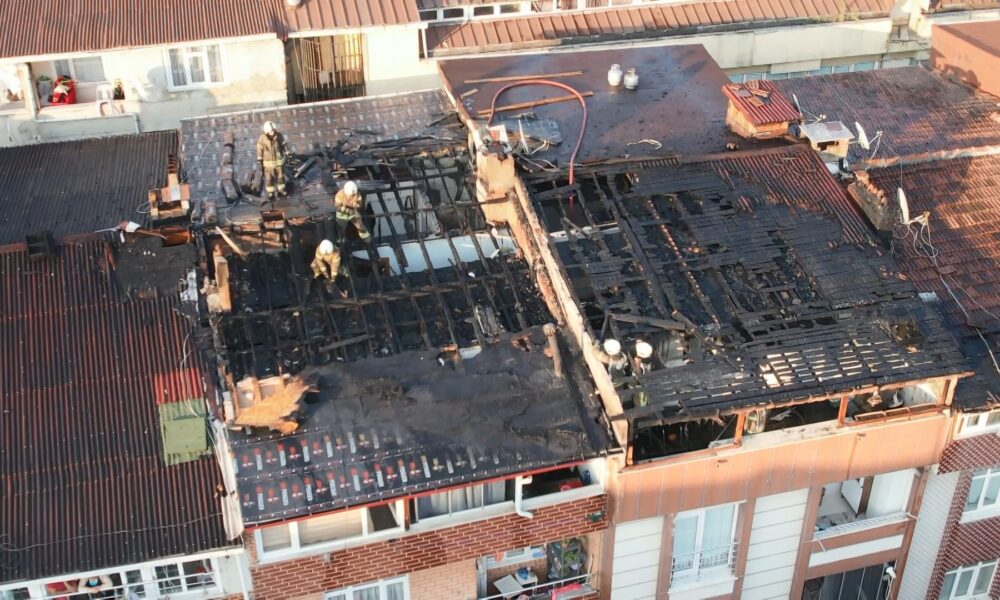 İstanbul – Sultangazi’de 5 katlı binanın çatısı alev alev yandı