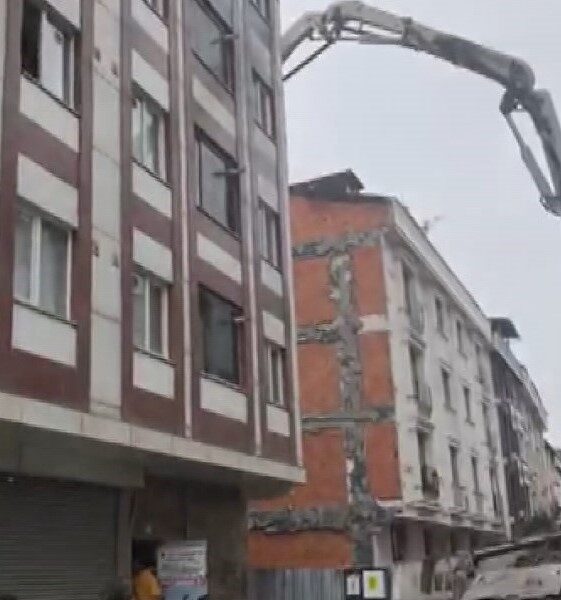 İstanbul- Sultangazi’de beton pompasının borusu patladı; 2 apartman ve 3 araç betonla kaplandı