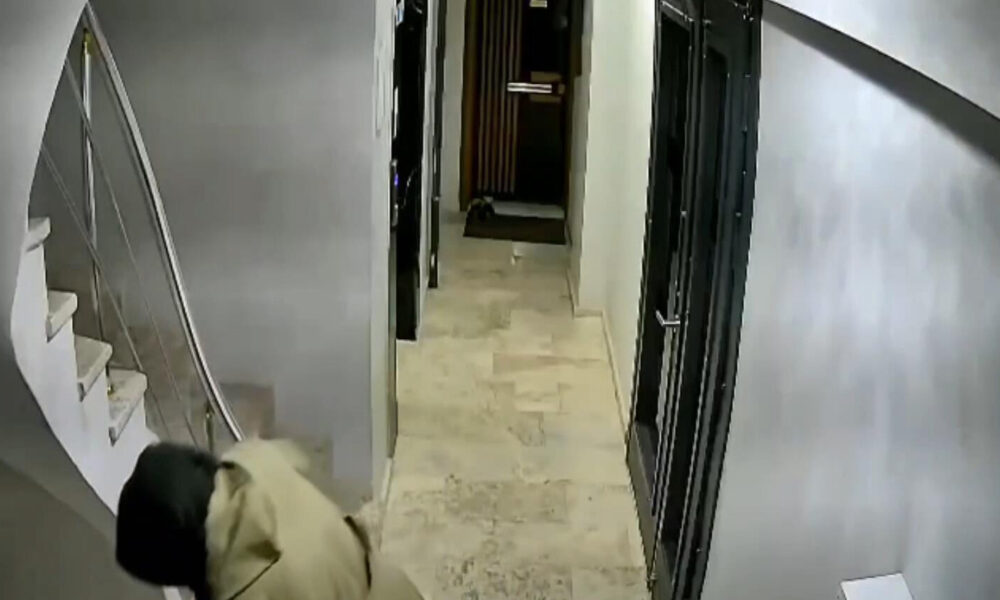 O anlar ise, binanın güvenlik kamerasına yansıdı.