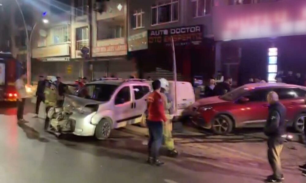 Sultangazi’de hafif ticari araç park halindeki otomobile çarptı: 2 yaralı