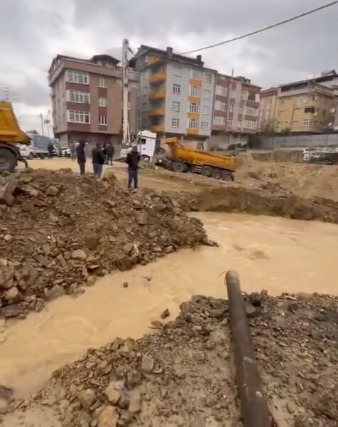 İstanbul- Sultangazi’de inşaat çalışmasında su borusu patladı