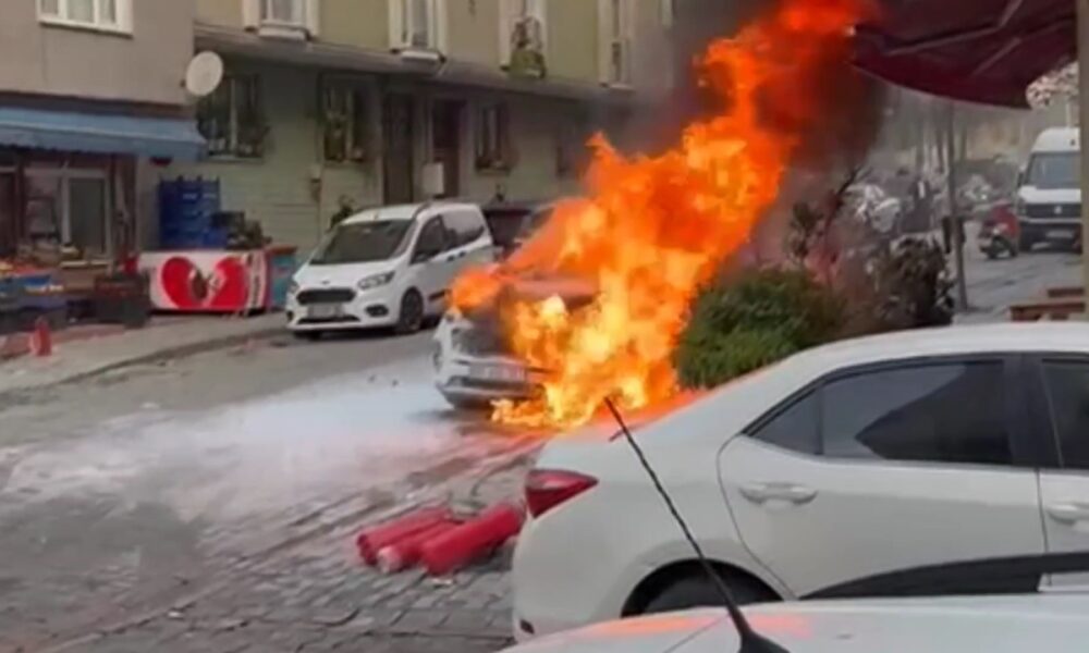 İstanbul- Sultangazi’de park halindeki cip alev alev yandı