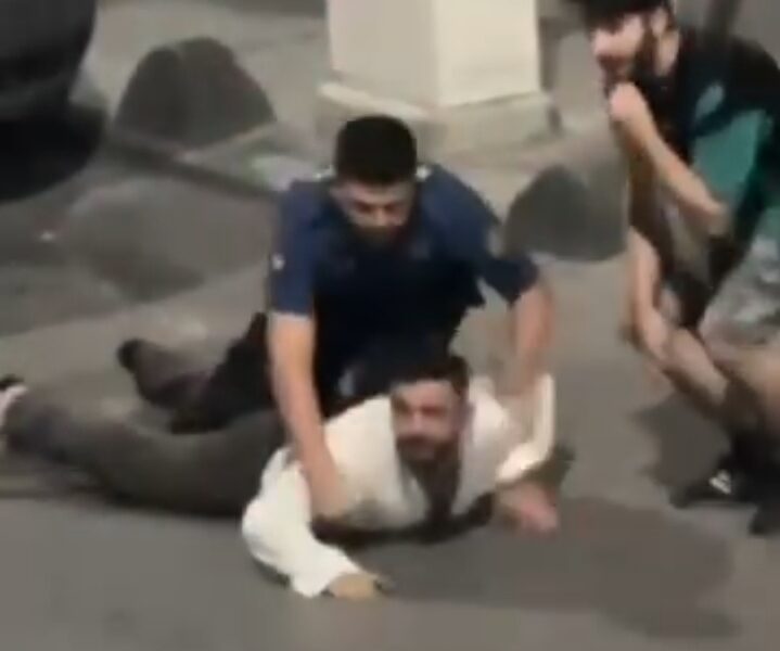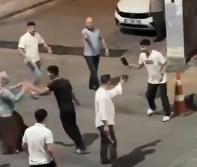 Sultangazi'de iki kişi arasında çıkan kavgada bir taraf satır çekti diğer taraf bıçak. Vatandaşların güçlükle ayırmaya çalıştığı olayda iki kişi gözaltına alındı. O anlar cep telefonu kamerasıyla görüntülendi. - Fotoğraf: İstanbul DHA