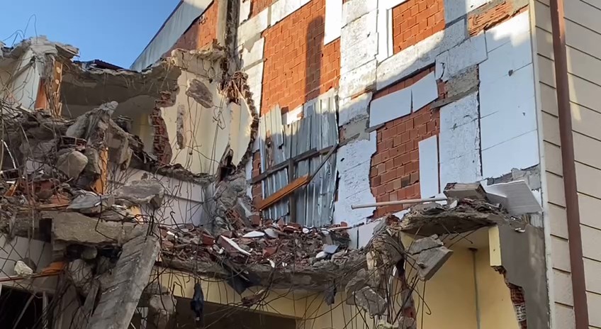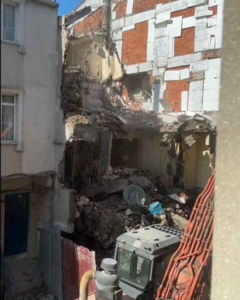 Sultangazi’de yıkım sırasında bişikteki binanın duvarı yıkıldı