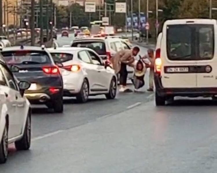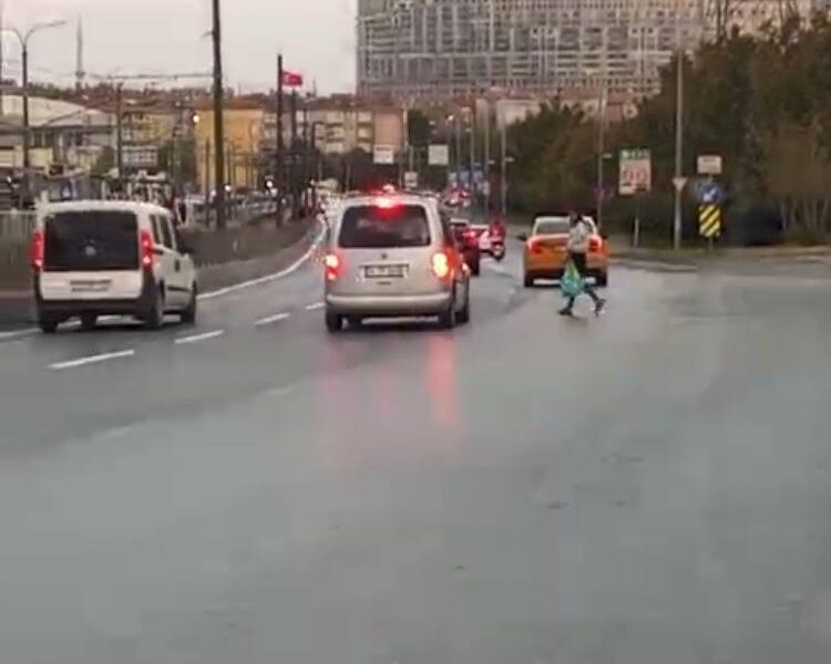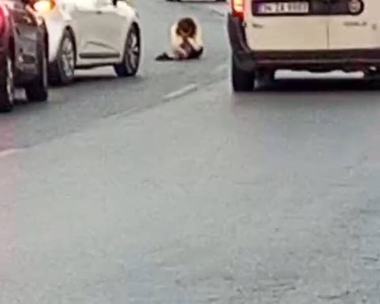 İstanbul – Sultangazi’de yola atlayarak oturan kadın trafikte tehlike oluşturdu